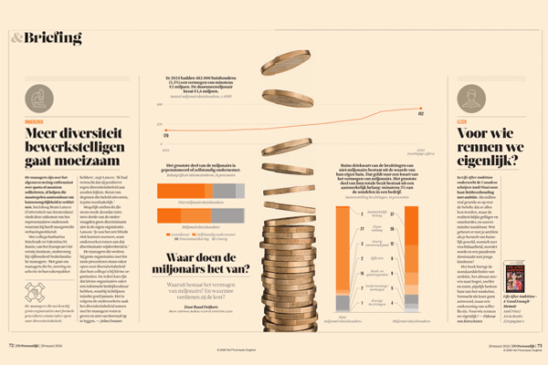 Voor FD Persoonlijk, het stijlvolle weekendmagazine van het Financieele Dagblad, maak ik wekelijks een infographic over thema’s rond werk en geld – van goed werkgeverschap en belastingzaken tot financiële steun van ouders aan kinderen. Ik volg relevante ontwikkelingen voor FD-lezers en vertaal statistische data samen met vormgevers naar heldere, visueel sterke infographics.